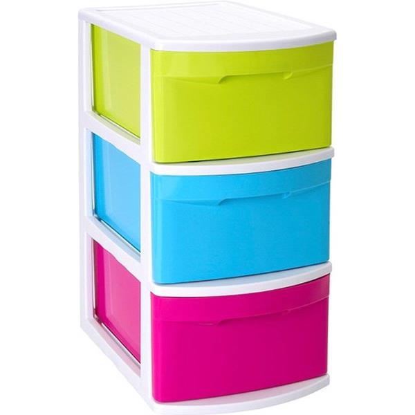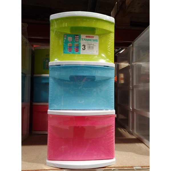 Cajonera Támesis de plástico con 3 cajones. Tiene una medida de 40 x 28 x 59 centímetros y es surtida en colores.