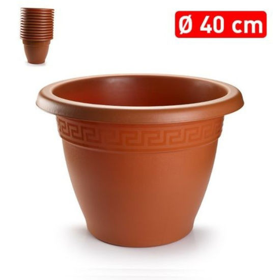 Maceta redonda de 40 cm, fabricada en plástico de alta calidad. Su color marrón aporta elegancia y se adapta perfectamente a cualquier espacio interior o exterior, ideal para plantas de tamaño mediano. Duradera y resistente a las condiciones climáticas.