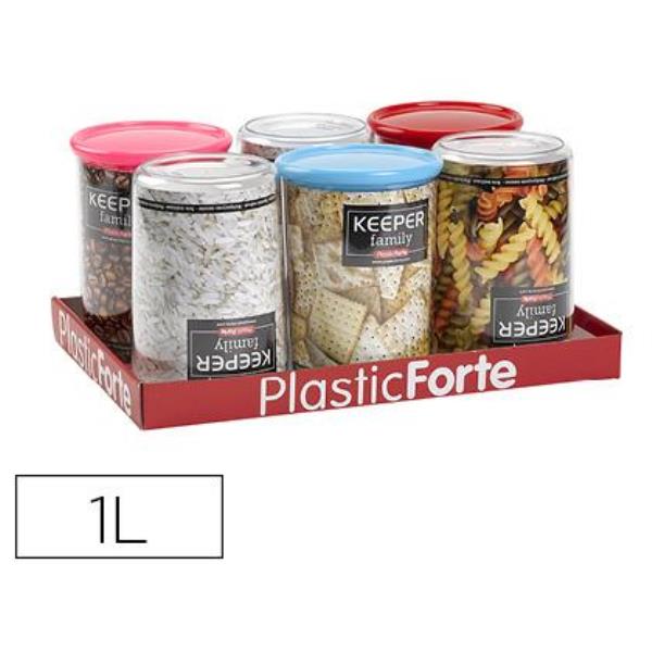 Bote multiuso transparente de plástico libre de BPA con tapa a presión. Capacidad: 1000 ml. Medidas: 11x11x15 cm.