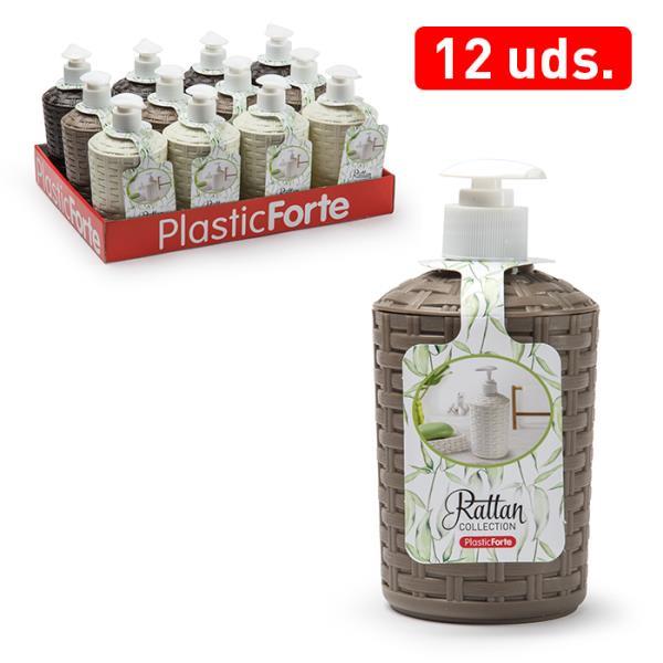 Dosificador para jabón e hidrogel. Material: rattan. Disponible en surtido de colores: crema, tierra y marrón. #limpiezahigieneproteccionplasticosur