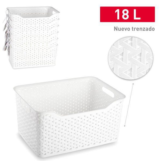 Cesta de polipropileno color blanco de 18 litros de capacidad. Medidas: 28,5x39 cm.