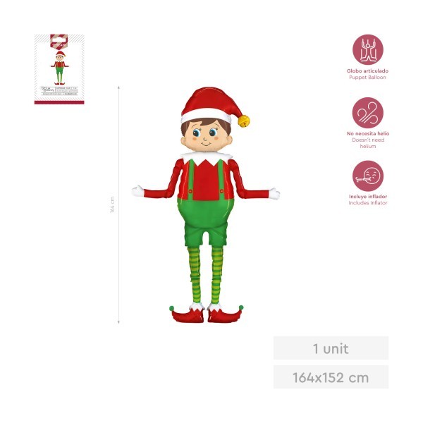 Añade diversión y espíritu navideño a tu decoración con este globo de Elfo. Tamaño: 164 x 152 cm.
