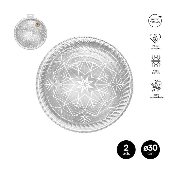 BANDEJA CARTON 2U. 30CM WINTER PLATA METALIZADO NAVIDAD