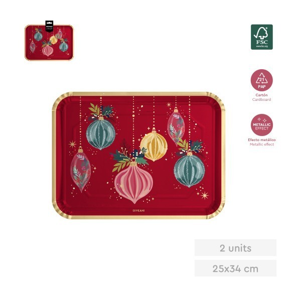 BANDEJA CARTON 25X34CM 2U. ROJA ADORNOS NAVIDAD