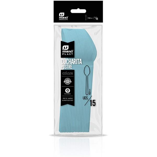 Pack de 15 cucharitas de postre en color azul de 12,5 cm.
