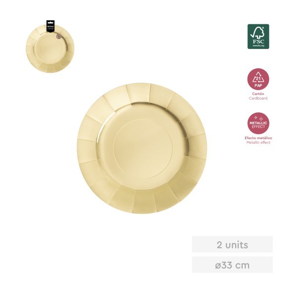 BAJO PLATO REDONDOS 33 CM CARTON 2U. ORO METALIZADO