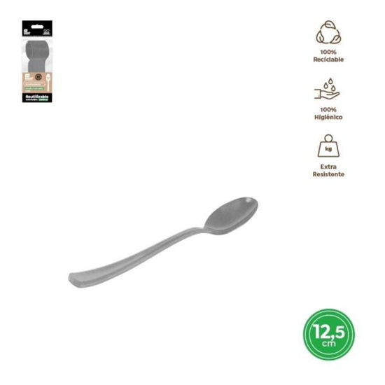 Cuchara plata de 12,5 cm reutilizable. Paquete de 12 unidades.