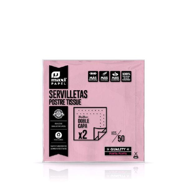 Servilleta postre en color rosa de 25x25 cm. Formato de 50 unidades.