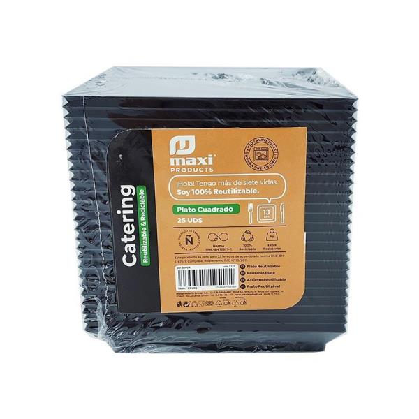 Pack 25 platos cuadrados negro. Medidas: 13x13 cm.