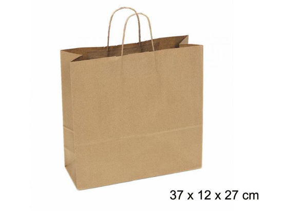 Bolsa de papel kraft natural, resistente y ecológica. Perfecta para tiendas, regalos o transporte de productos. Medidas: 37x12x27 cm