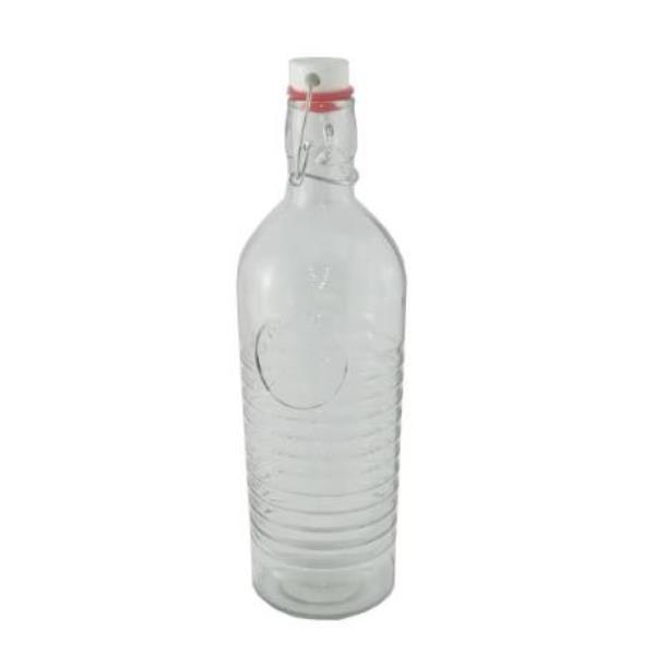 Botella de vidrio con relieve. Capacidad: 1000 ml. Apta para lavavajillas.