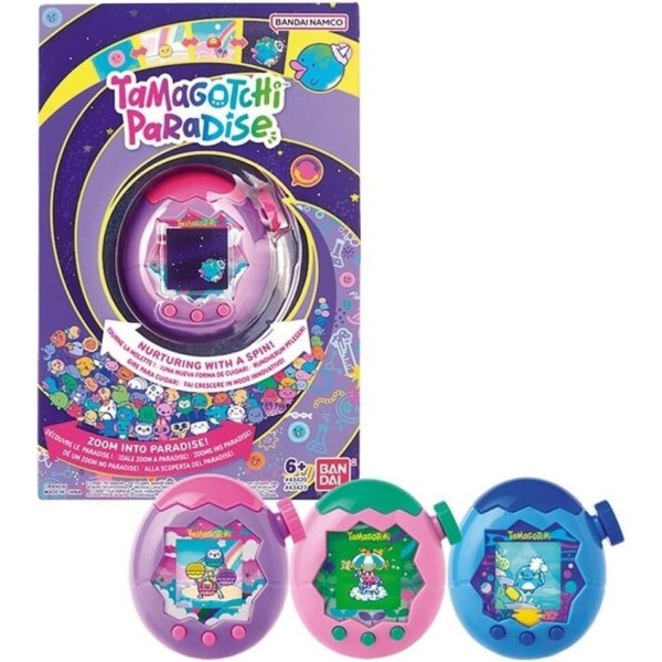 ¡El clásico Tamagotchi se renueva con Tamagotchi Paradise! Cuida a tu personaje, juega con él y observa cómo evoluciona de formas únicas. Usa el zoom giratorio para explorar el paraíso y descubrir nuevas aventuras. A partir de 6 años.