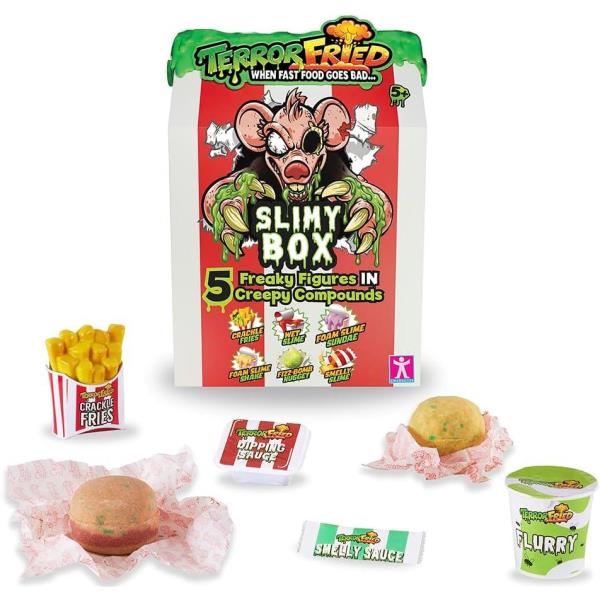 Descubre las figuras más espeluznantes ocultas dentro de la comida. Descubre 5 figuras espeluznantes y misteriosas en 6 compuestos asquerosos en tu menú Caja Viscosa. Edad recomendada +5 años.