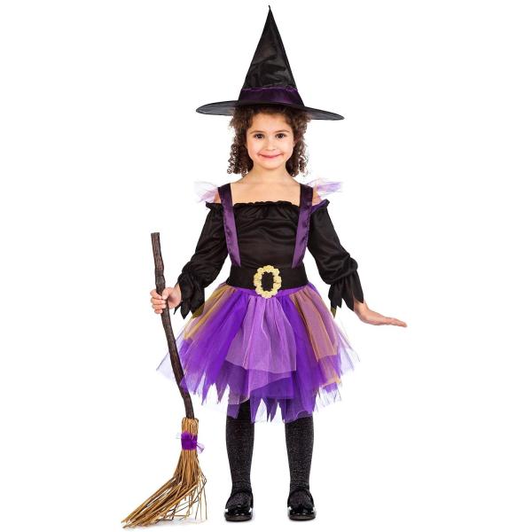 Disfraz infantil de bruja tutú para niñas de 7 a 9 años. Incluye: tutú con tirantes y cinturón y blusa.
