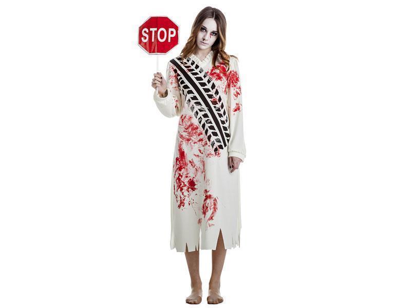 Disfraz niña de la curva de la talla M-L. Incluye vestido y señal de tráfico.