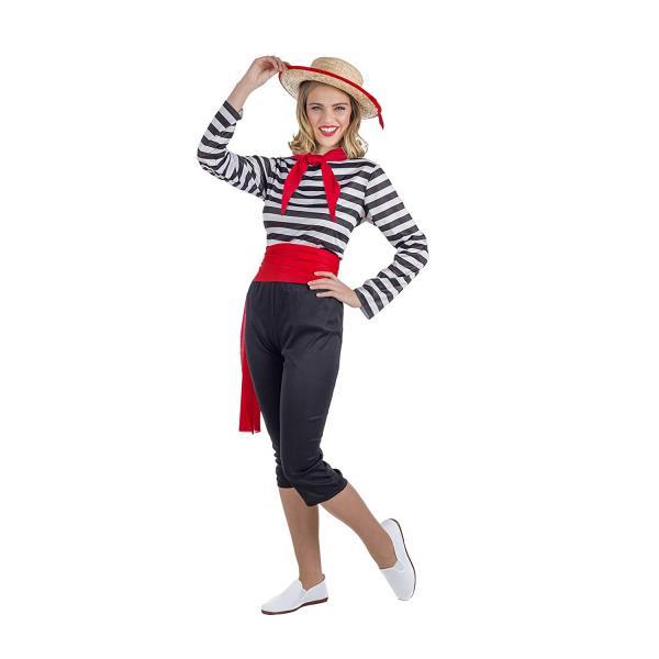 Disfraz adulto gondolera para mujer talla M-L. Incluye: sombrero, camisa, pañuelo, fajín y pantalón.