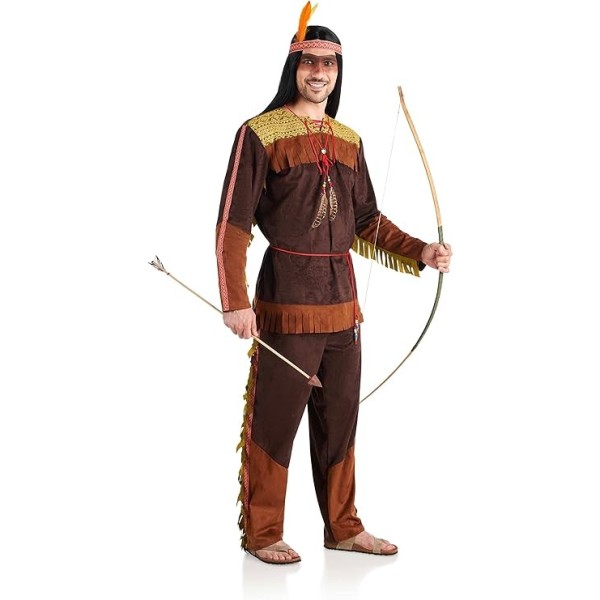 Disfraz de Indio Arapahoe talla S que incluye diadema con plumas, camisa, pantalón y cinturón de cuerda.