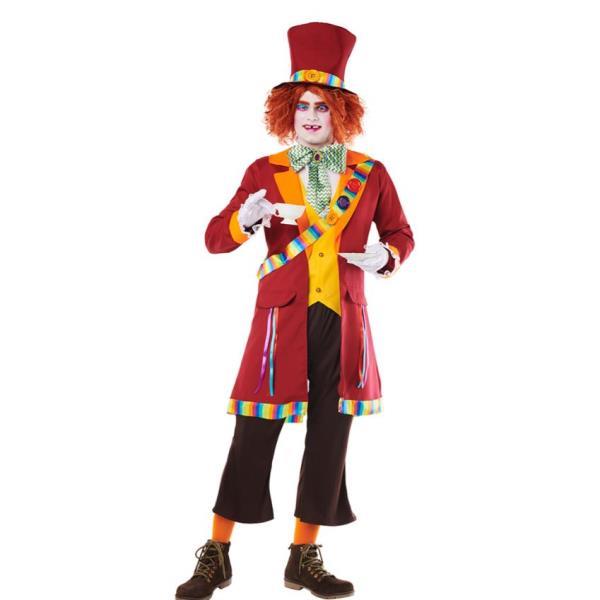 Disfraz de sombrerero loco de la tall M-L. Incluye sombrero, cuello, pajarita, chaqueta, cinta bandolera, pantalones y chaleco.