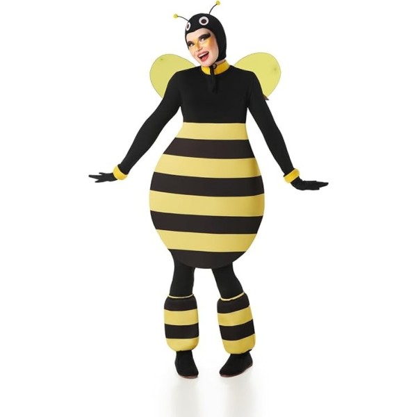 Haz que todas las miradas se posen en ti con este encantador disfraz de abeja XL, perfecto para quienes quieren lucir un estilo alegre y divertido. El disfraz incluye un cuerpo acolchado con diseño clásico de abeja, fácil de llevar y muy cómodo para moverse durante todo el evento. La capucha con ojos y antenitas aporta un toque simpático, mientras que las alas ligeras y los calentadores a juego rematan un look completamente inspirado en este adorable insecto.