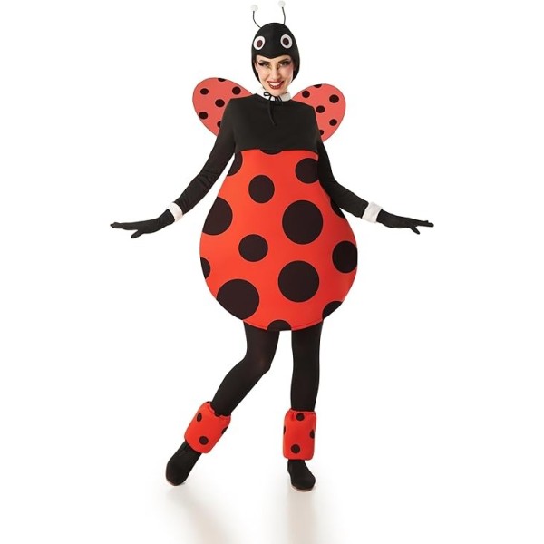 Transforma cualquier fiesta en un desfile de color con este disfraz de mariquita XL perfecto para carnaval o fiestas temáticas. El traje cuenta con un cuerpo rojo con grandes lunares negros, suave y acolchado, que crea un efecto divertido y muy reconocible. La capucha con antenitas añade un toque simpático, mientras que las alas y calentadores completan un conjunto lleno de encanto.