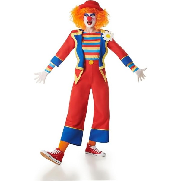 Llena cualquier fiesta de alegría con este disfraz de payasa multicolor talla XL, ideal para quienes quieren destacar con un look divertido, colorido y lleno de energía. El conjunto incluye chaqueta multicolor, camisa a rayas y pantalón amplio.
