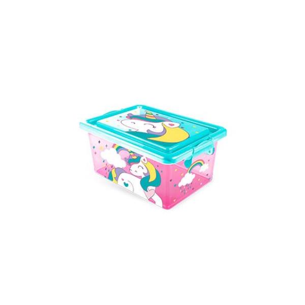 Caja ordenación decorada con dibujo de unicornio. Medidas: 28x19x12 cm.