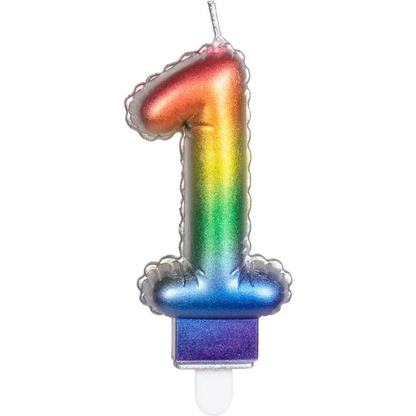 Celebra un cumpleaños lleno de color con esta vela número 1 multicolor con un precioso efecto metalizado.
