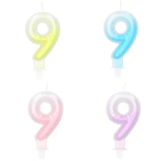 Vela cumpleaños número 9 en tonos pasteles. Disponible en varios colores (amarillo-azul-rosa-lila), puede indicar el modelo deseado en el comentario del articulo.