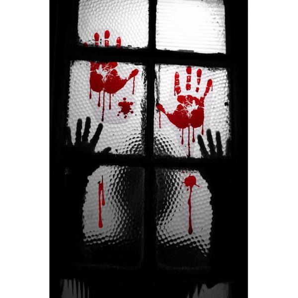 Pegatina para ventana con manos sangrientas. Medidas: 25x35 cm.