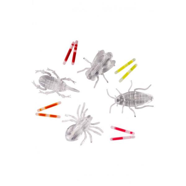 Set de 4 insectos luminosos que brillan en la oscuridad.