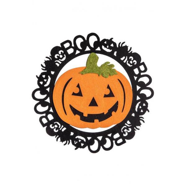 Adorno calabaza de fieltro con purpurina. Medida: 38 cm.