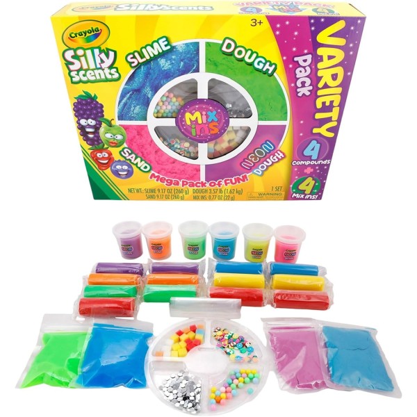 Este completo pack incluye 29 piezas para experimentar con plastilina aromática, slime perfumado, arena mágica y plastilina neón. Ideal para pequeños creadores desde los 3 años.