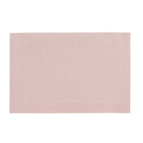 Mantel individual rectangular fabricado en malla de color rosa claro, ideal para proteger la mesa y aportar un toque suave y elegante al comedor o la cocina. Medidas: 30x45 cm.