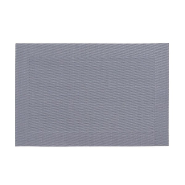 Mantel individual rectangular fabricado en malla de color azul grisáceo, ideal para proteger la mesa y aportar un toque moderno y discreto al comedor o la cocina. Medidas: 30x45 cm.