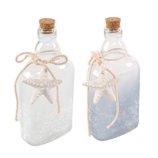 Botella decorativa de cristal disponible en dos modelos. Puede indicar el modelo deseado en el comentario del articulo. Medidas: 8,5x4,7x19 cm.
