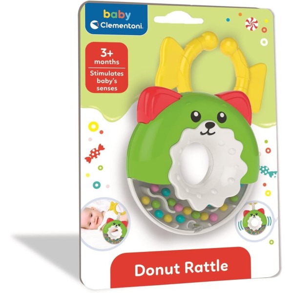 Rosquilla sonajero ideal para fomentar el desarrollo de los bebés. A partir de 3 meses.