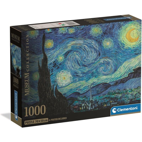 Disfruta del arte más icónico con este puzzle de 1000 piezas que reproduce la célebre obra La Noche Estrellada de Vincent van Gogh. Tamaño de 70x50 cm.