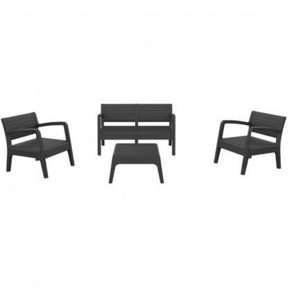 JUEGO JARDIN MESA CON 2 SILLONES Y BANCO NEGRO VALENCIA