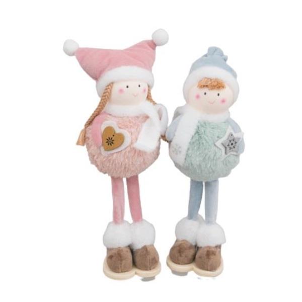Figura de 31 cm fabricada en poliéster, vestida con gorrito y bufanda. Disponible en dos modelos (niña-niño), puede indicar el modelo deseado en el comentario del articulo.