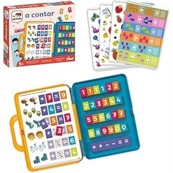Colocando correctamente las fichas de los numeros en las laminas, los niños aprenderan sus primeras operaciones matematicas simples. 15 laminas. Autocorrectivo Edad indicada +5 años.