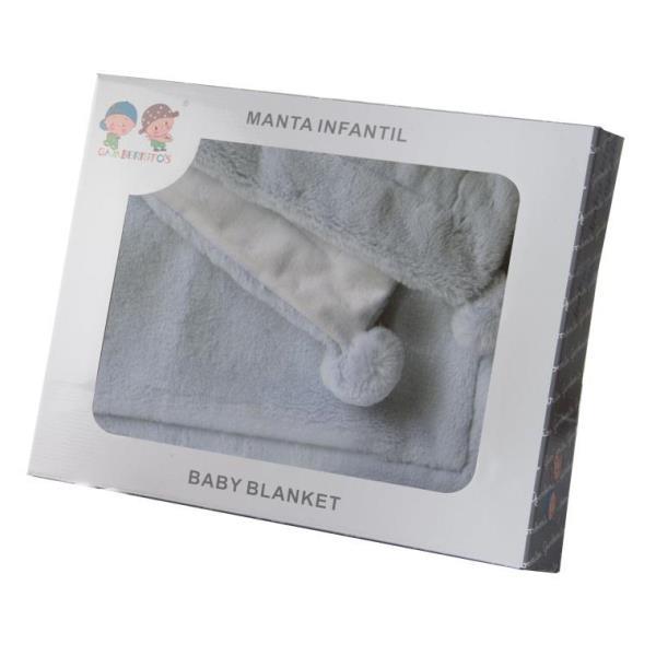 Manta infantil de 80x110 cm en color gris, suave y acogedora, perfecta para mantener a los más pequeños abrigados en cualquier época del año. Su textura agradable y diseño neutro la hacen ideal para combinar con cualquier estilo de habitación infantil.