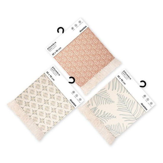 Transforma tus espacios con un toque fresco, natural y decorativo gracias a la alfombra Bora. Confeccionada con materiales de calidad como poliéster y algodón, esta alfombra combina suavidad, ligereza y resistencia para brindarte confort y estilo en cualquier rincón del hogar. Disponible en surtido de elegantes estampados botánicos y geométricos, con delicados flecos decorativos en los extremos que aportan un aire bohemio y acogedor. Puede indicar el modelo deseado en el comentario del articulo. Medidas: 50x90 cm.