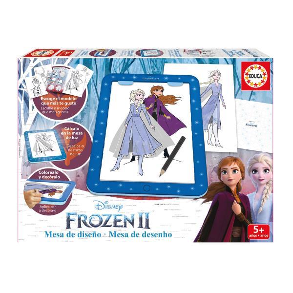 Mesa de luz para crear tus diseños favoritos de Frozen. Incluye: 1 mesa de luz, 1 libro de 32 páginas con modelos, patrones, 1 lápiz y 1 hoja con adhesivos. Edad recomendada +5 años. Medidas: 25,8x5,8x35,6 cm.