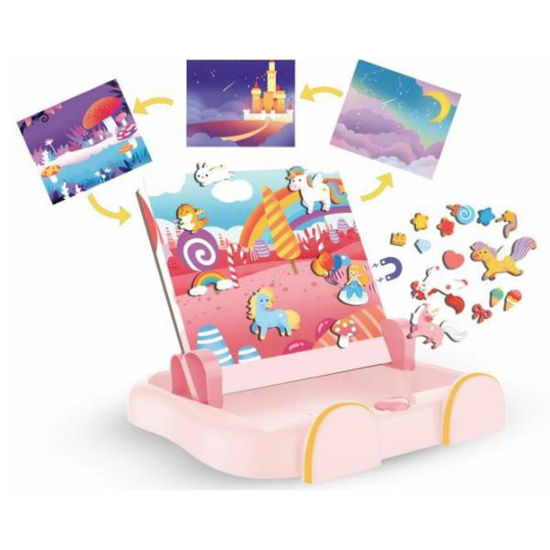 ¡Crea a todo color un mundo mágico sin igual! Incluye rotulador especial para pizarra conborrador, piezas magnéticas. Edad recomendada +3 años. Medidas: 28x30x4 cm.