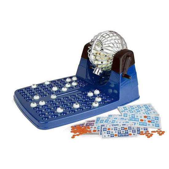 Bingo automático de lujo con 72 cartones, fichas de juego y 90 bolas especialmente tratadas para que no se borren. Está indicado para mayores de 3 años.