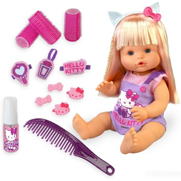 La muñeca Nenuco Hello Kitty tiene el pelo largo y rubio y viene con accesorios de peinado y un vestido de Hello Kitty. A partir de 2 años.
