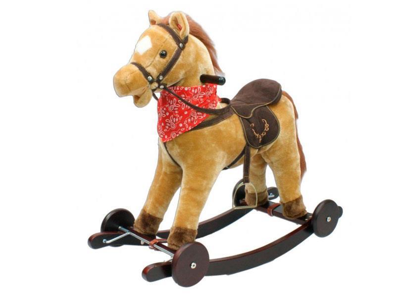 Caballo balancín del oeste con ruedas y funciones. Su medida es de 77 x 28 x 68 centímetros y está recomendado para mayores de 2 años.