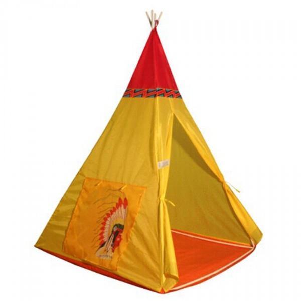 Una tienda de campaña en vivos colores, que imita los tipi de los indios. Tiene unas dimensiones de 100 cm x 100 cm x 135 cm aproximadamente. Sencillo de montar en minutos. Recomendado a partir de 3 años.