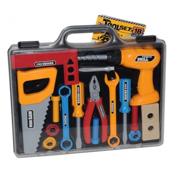 Este maletín de herramientas de 18 piezas incluye todo lo necesario para imitar a los adultos y desarrollar la imaginación a través del juego. Contiene un taladro, sierra, martillo, destornilladores, llaves y accesorios para montar y desmontar sin parar. Medidas: 35 x 29 x 6 cm.