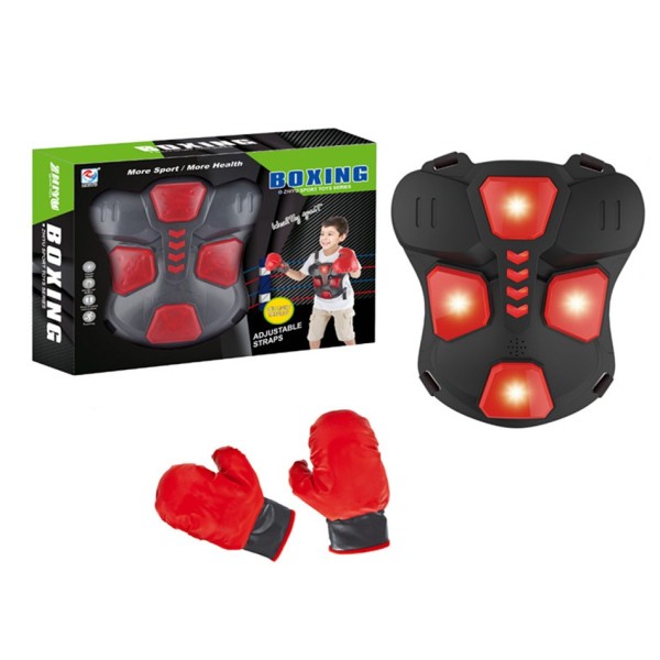 Este panel de boxeo interactivo es perfecto para que los niños practiquen deporte mientras se divierten. Incluye luces y sonidos que se activan con los golpes, convirtiendo cada entrenamiento en un emocionante juego de reflejos y coordinación. Medidas: 44 x 33,5 x 9,5 cm.